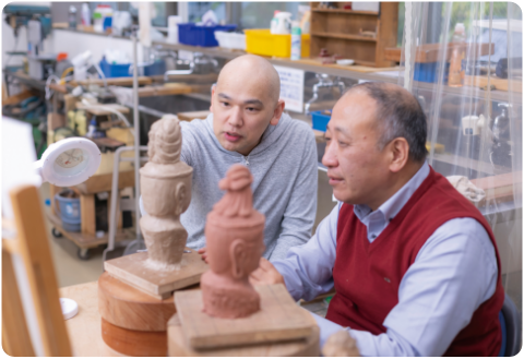 本専攻では、様々なジャンルの表現活動や文化遺産についての学び、歴史学などを含んでの広義の「文学」と、主に仏教に関わる「芸術」を扱います。