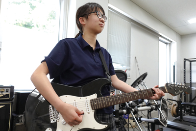 ロックやポップスの演奏を通してギターやベース、ドラムなど心を通じ合わせ演奏しています。学園祭などで披露し、ステージを華やかに彩ります。 |